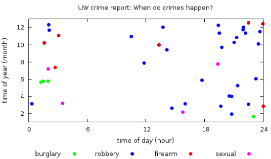 This afternoon, the University of Washington Police emailed another “Notification of a Criminal Incident” (a student was robbed for $20 and a six-pack of Dr. Pepper). I forwarded it to a friend north of the University, and she replied, “Remind me never to walk south from my house after 11 p.m.”