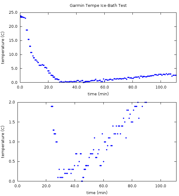 These data were taken from the GPX file as read directly from the Fenix. Uploading to Garmin Connect and downloading again had rounded the values to integer-degrees C; a considerable degradation in precision. I don’t understand why Garmin would do such a thing, but then, I’m careful with original source data.