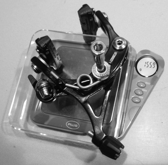 Nashbar claims 191 grams. I get 205.8. That’s 7.8% high. Weighing, as before, used the AWS Blade scale calibrated using the 200 g weight.